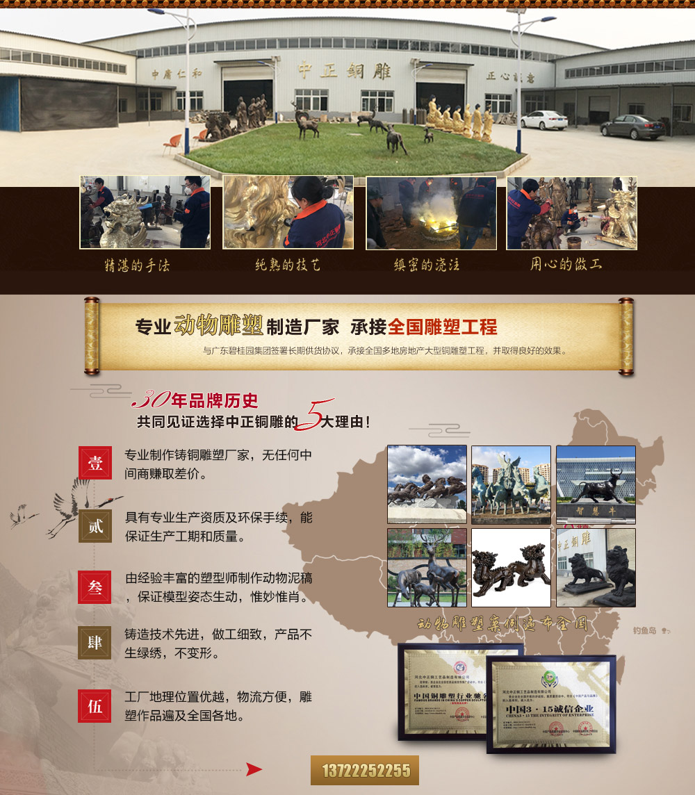 河北中正銅工藝品制造有限公司具有優越的地理位置,離107國道10公里,離天津海港160公里,交通便利。追求卓越、開拓創新、重合同、守信譽、讓客戶滿意的經營理念。河北中正銅工藝品制造有限公司竭誠為國內外客戶提供優質的服務,愿與新老客戶攜手共創美好未來。